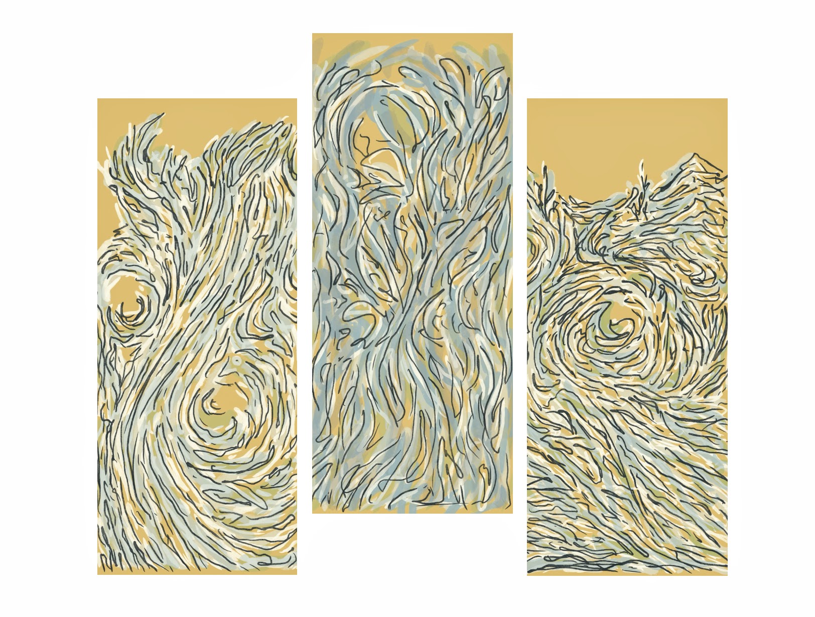 Three Printed Panels, Digitally-Painted